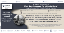The event will also discuss options for training and skills transfer such as an online data masterclass to improve data awareness and literacy among senior leaders, exchange insights to identify user requirements, and deepen and widen the production of local economic data from tax data through the SEAD-SA portal.