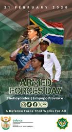 The main Armed Forces Day Parade will take place on 21 February 2026 at Thavhani Mall along the R524 in Thohoyandou.