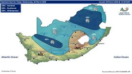The South African Weather Service (SAWS) says Wednesday’s forecast indicates partly cloudy conditions, ranging from cool to warm, with isolated to scattered showers and thundershowers.
