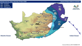 Isolated showers and thundershowers are possible over the Eastern Cape, Western Cape, parts of the Free State and North West.