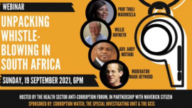 “The panel will unpack the importance of whistleblowing in the fight against corruption in South Africa. The panel will also look at the challenges confronting whistleblowers, as well as potential solutions to ensure a safer, more conducive environment,” the statement said.