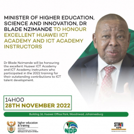 Nzimande was speaking during the Huawei South Africa ICT Talent Development Annual Awards ceremony on Monday, celebrating and honouring the excellent Huawei ICT Academy Instructors.