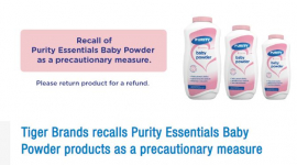 Tiger Brands is recalling Purity Essentials Baby Powder products as a precautionary measure after trace levels of asbestos were detected in test samples.