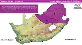 These conditions will also be experienced in the north-western parts of Kwazulu-Natal, north-eastern parts of the North West, Gauteng, Limpopo and Mpumalanga until at least Friday.